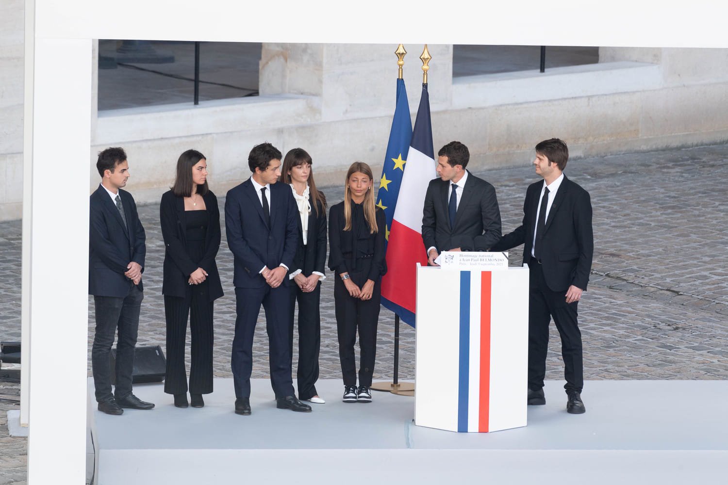 Dans la cour des Invalides ce jeudi après-midi lors de lhommage national à Jean-Paul Belmondo Victor sest avancé vers le pupitre entouré des cinq autres petits-enfants de Bébel. Avant la prise de parole dEmmanuel Macron Victor Belmondo petit. La Rédaction - 09092021.